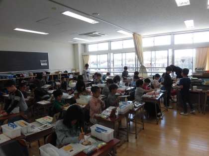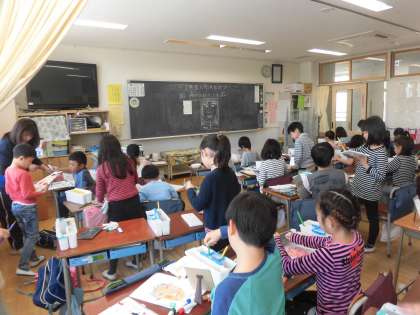 16日(火)の2・3時間目、3年3組は図画工作の時間でした。「3年生になった自分」と題して「自画像」を描いていました。鏡を見ながら画用紙にペン書きし、その後、色を付けました。