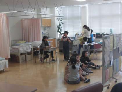 19日(金)、2年生と3年生は保健室で視力検査を行いました。自分の番が来るまで静かに待つことができました。写真は3年生の様子です。