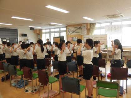 19日(金)の5時間目、5年1組は音楽の時間でした。声を出すときの息の強さをティッシュペーパーを使って感じ取っていました。最初は座って、次に立って、最後に二人組になって行いました。