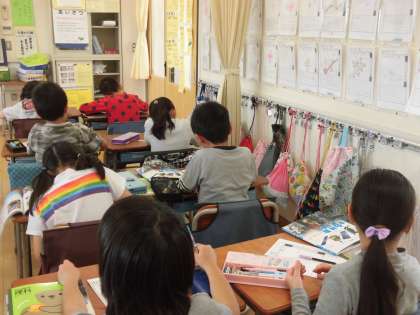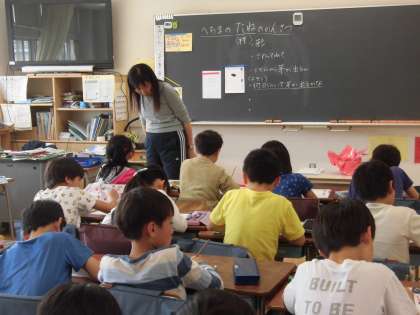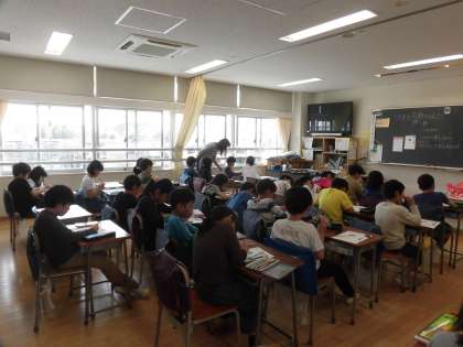 19日(金)の5時間目、4年4組は理科の時間でした。ヘチマのたねの観察をしていました。観察カードにたねの絵や気付いたことをかきました。