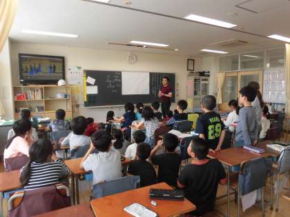 19日(金)の5時間目、5年2組は学級活動の時間でした。学校全体で取り組む「長なわとび」についての話し合いをしました。長なわとび全国優勝チームの映像を見て、気付いたことを出し合いました。「長なわ向上委員会」の3人が司会と書記を務めました。