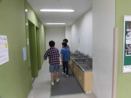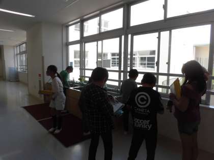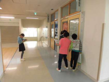 20日(土)の2時間目、4年1組は社会科の時間でした。校内の水道調べをグループごとに行っていました。入れない場所は窓ガラス越しに探す姿がありました。