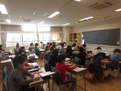 22日(月)の4時間目、4年2組は国語の時間でした。物語「白いぼうし」の一段目を読み進めていました。