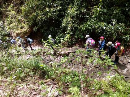 23日(火)の高尾山は、絶好の行楽日和。山頂に10時過ぎには到着したので、ゆっくりと記念写真を撮ったり、お弁当やおやつを味わうことができました。帰路は、6号路を沢伝いに下りていきました。ウグイスやカエルの鳴き声に耳を澄ませながら、晩春のうららかな陽気を全身に浴び、2時間ほどの山歩きを楽しみました。