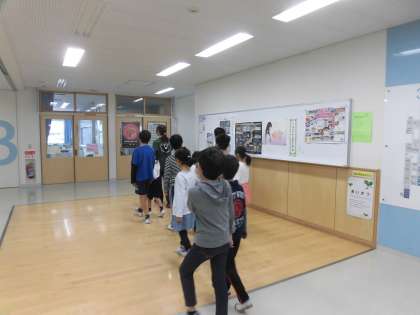 24日(水)の2時間目、ひかり学級の子どもたちは校内探検を行いました。2つのグループに分かれて、探検に歩きました。上級生が下級生の手を引いて案内しました。
