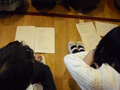 6年生が、感謝の会に向けて呼びかけの練習をしているところです。体育館に広がる6年生の声。出番を待つ人は台本を読みながら自分の台詞の確認をしています。感謝の気持ちが伝わる呼びかけに仕上がるようにしていきます。