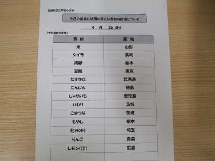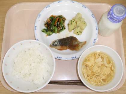 今日は献立の数も多く、かきたま汁であったため配膳が少し難しい献立でした。しかし、みんなで協力して上手に配膳できていました。また、主菜、副菜の彩りがよく、美味しくいただけましたね。