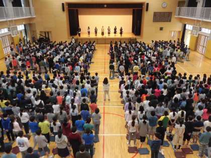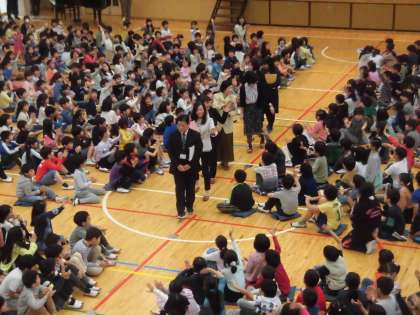 26日(金)の5時間目、体育館で離任式を行いました。6人の先生が来校され、子どもたちとお別れをしました。1ヶ月ぶりの再会をともに喜び、互いに元気をもらいました。