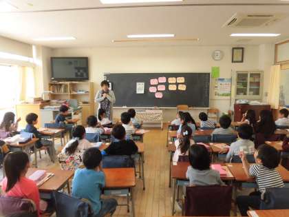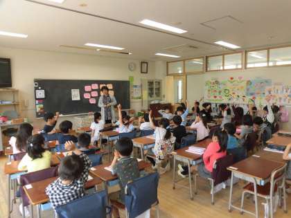7日(火)の4時間目、1年2組は道徳の時間でした。週目標である「『ふわふわことば』でともだちふやそう」から「ふわふわことば」について考えました。「ふわふわことば」とは、言われてうれしいことばだとわかり、「ありがとう」「あそぼう」「いいよ」「ごめんね」などたくさんのことばが黒板に登場しました。