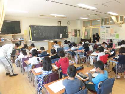 8日(水)の2時間目、2年2組は算数の時間でした。「1000までの数」の学習で、今回は不等号を使った数の大きさ比べをしました。何の位を比べればよいかがわかりました。