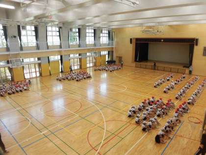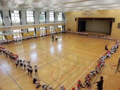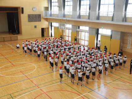 8日(水)の4時間目、4年生は体育館で団体演技の練習を行いました。特に並び方の練習をしました。クラスごとにピラミッド型に並んだり、全員で一つの輪になったりしました。