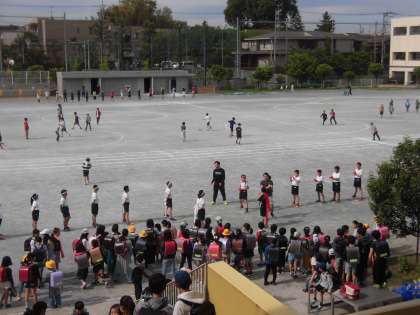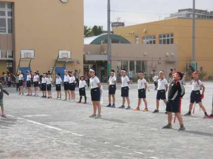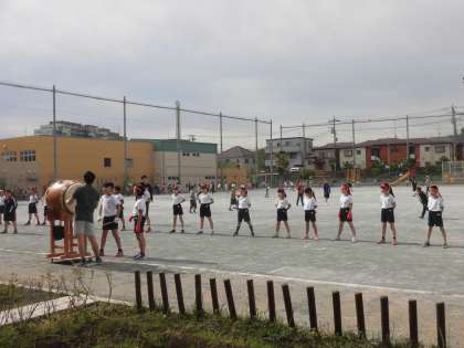 9日(木)の朝、校庭に応援団の元気な声が響き渡りました。これまでは体育館で練習を重ねてきました。登校してきた子どもたちによる人垣ができ、練習にもより力が入りました。練習が終わると子どもたちから拍手がわき上がっていました。