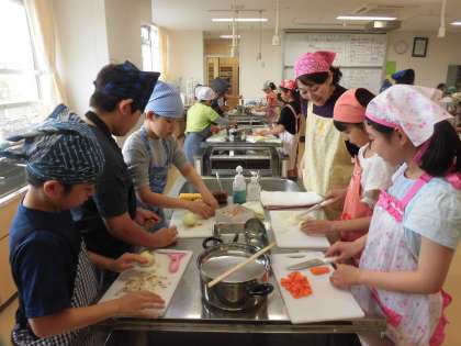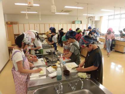 9日(木)の3・4時間目、5年3組は家庭科の時間でした。川場移動教室に向けて「カレー」作りに挑戦しました。ジャガイモやニンジン、タマネギを分担して切っていました。タマネギを切って涙が出たり、ジャガイモのでこぼこに苦労したりしていました。この経験が川場でも活きると思います。