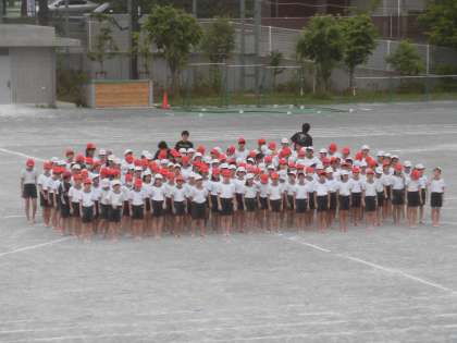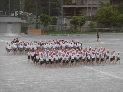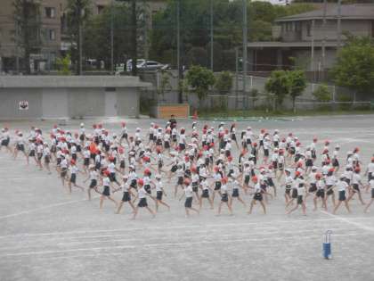 9日(木)の4時間目、6年生は校庭で団体演技の練習を行いました。集団行動の復習をしていました。中央に集合してから前後に分かれて歩き始めました。その後、向かいあって行進をし、相手とぶつからずに交差することができました。