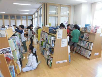 11日(土)の2時間目、4年2組は図書の時間でした。読みたい本を探したり、司書に相談したりする姿がありました。読む本を決めた人は席について静かに読むことができました。