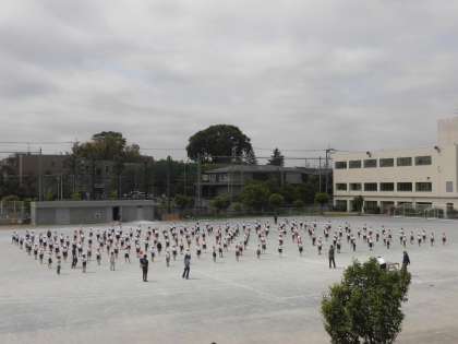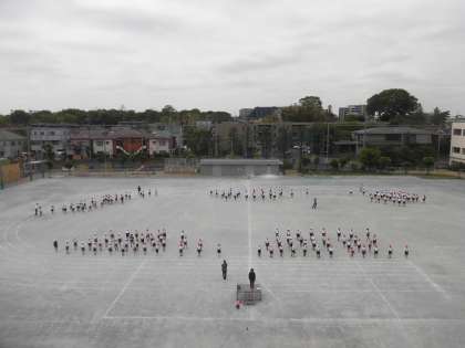 13日(月)の2時間目、4年生は校庭で団体演技「エイサー」の練習をしました。最初に隊形移動の確認をしてから、踊りました。今回は、パーランクーを叩きながら踊りました。かけ声も大きく迫力がありました。