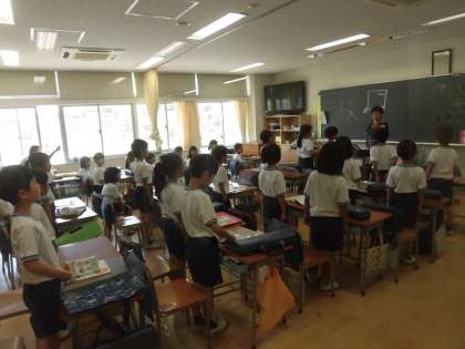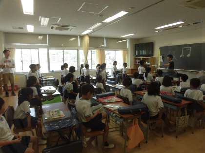 15日(水)の2時間目、2年2組は音楽の時間でした。教室で行いました。運動会で歌う「ゴーゴーゴー」の曲は、赤組と白組に分かれて元気よく歌いました。