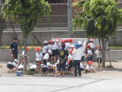 16日(木)の1・2時間目、1年3組は図画工作の時間でした。砂場で造形遊びをしました。夢中になって取り組んでいました。
