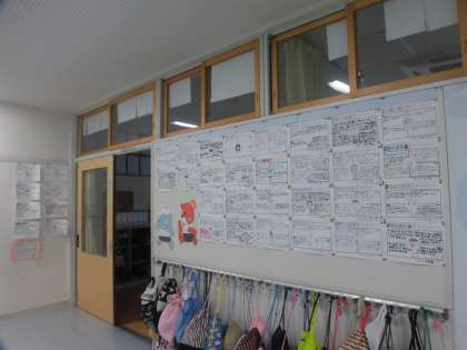 6年生の廊下に「運動会のめあて」が登場しました。徒競走、団体演技、団体競技、係の4つについてそれぞれのめあてを書きました。最上級生としての意欲に溢れています。