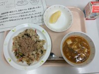 今日は、「ドイツ」がテーマの給食です。「ザワークラウト」はドイツ語で“酸っぱいキャベツ”を意味します。本場では発酵させて作ります。給食では、ドレッシングにお酢を効かせて和えました。