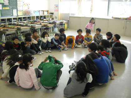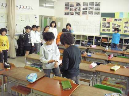 2・4年生は室内遊びです。ドンジャンケン、ハンカチ落とし等で工夫しながら遊んでいます。「みんなでたのしく」に限らず、子どもは遊びを通して社会性や協調性等を身に付けていきます。大切な時間です。