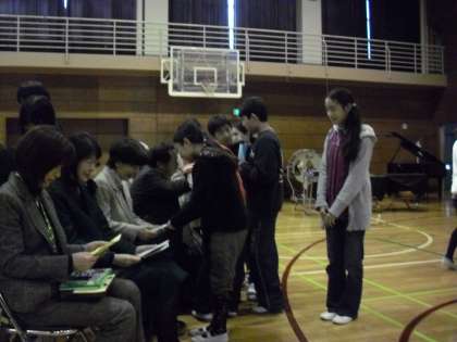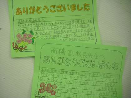 続いて、子どもたちから感謝の手紙を受け取りました。子どもたちは、自分が感謝の手紙を書いた先生や主事さん方のところに行って手渡しました。丁寧に書いてある心のこもった文章に感激しました。