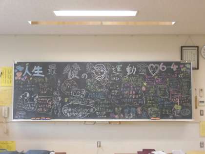 6年生にとって小学校生活最後の運動会。その思いを学級のみんなで綴りました。写真は上から3組、4組の順です。