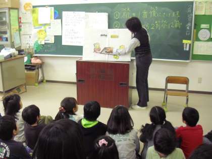 今朝の読み聞かせの様子です。今日もたくさんの保護者の方々にボランティアで読み聞かせをしていただきました。ありがとうございます。低学年では、動物が主人公のお話やパネルシアター等、子どもたちの興味・関心が高いものを選んで読んでくださっていました。