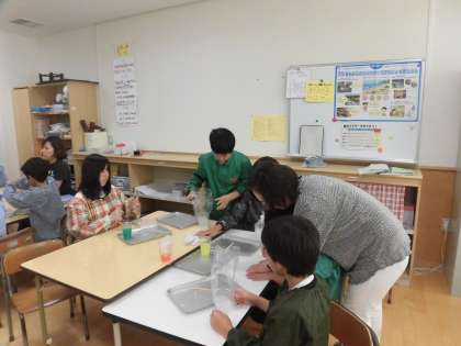 29日(水)の4時間目、ひかり学級は生活単元の時間でした。みんなで「スライム」を作りました。食紅を使い、きれいな色もつけました。子どもたちはスライムの感触を楽しんでいました。