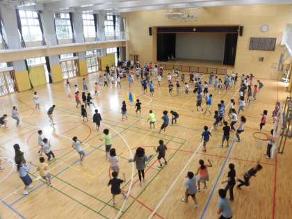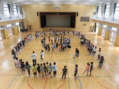 29日(水)の5時間目、5年生は体育館でキャンプファイヤーの練習をしました。6月3日から川場移動教室に出かけるためです。燃える火をコーンで代用し、ダンスの練習をしていました。ジンギスカン、オクラホマミキサー、パプリカの3曲を踊ります。子どもたちにとって初めてのオクラホマミキサーでしたが、男子と女子が手をつないで楽しく踊ることができました。