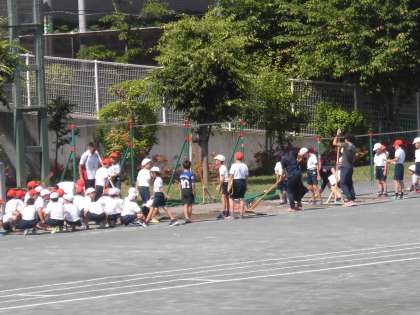 30日(木)に実施した校庭での新体力テストは、立ち幅跳びとソフトボール投げです。各種目に学年の先生と専科の先生が入り、測定をしました。4・5時間目には、4年生が新体力テストに挑戦しました。