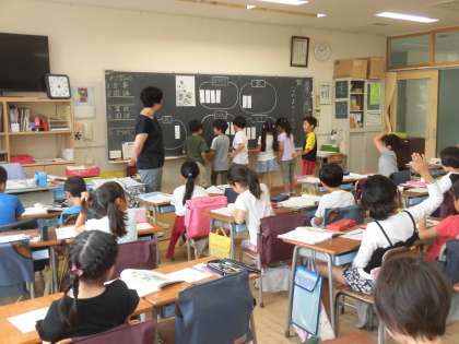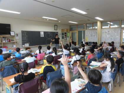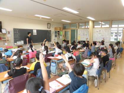 31日(金)の2時間目、2年4組は国語の時間でした。同じ仲間の言葉を理解して分類することがめあてでした。「動物」「虫」「鳥」の仲間に入る言葉を考えたり、他の仲間を考えて図に加えたりしました。子どもたちは言葉をよく知っていて、たくさん発表しました。