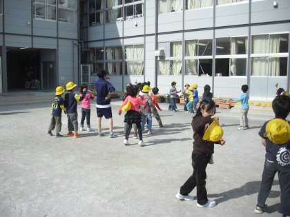 掃除が終わって、昼休みです。クラスの子どもたちと一緒に遊んでいます。年齢は異なっても、遊びを通して距離はぐっと近づくものです。