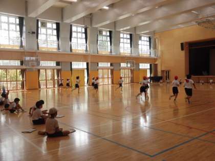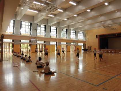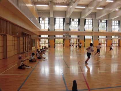 3日(月)の1時間目、4年1組は体育の時間でした。全校朝会後そのまま体育館に残り、朝の会を済ませてから、「20mシャトルラン」に挑戦しました。ペアを組み、互いの走りを応援したり、回数を確認したりしていました。
