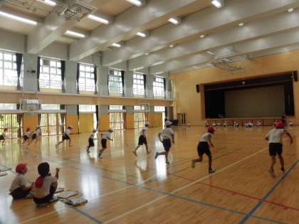 3日(月)の2時間目、3年2組は体育の時間でした。体育館で「20mシャトルラン」に挑戦していました。学生ボランティアさん2名の応援を受けながら、子どもたちも頑張っていました。