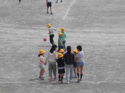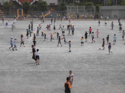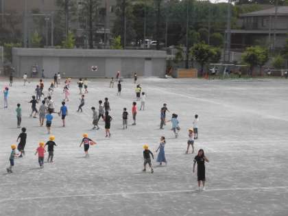 3日(月)からの1週間、中学校の体育祭練習のため、校庭での体育と外遊びを制限しています。(小学校の運動会前は、中学校側にいろいろと譲っていただきました。)3日(月)は昼休みのみ、外遊びができました。校庭の半分という制限がついていますが、子どもたちは喜んで遊んでいました。6年生と手をつないで校庭に出てくる1年生の姿もありました。