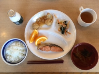 朝食です。みんな元気です。ハイキングに備えてしっかりエネルギーを蓄えます。いただきます。