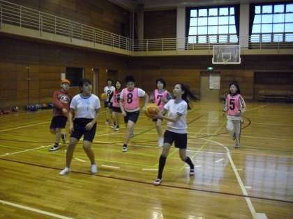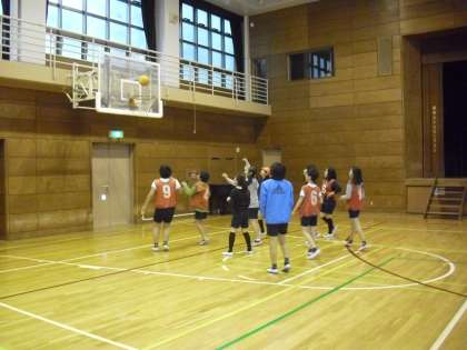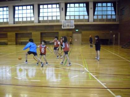 6年生の体育の授業の様子です。外はみぞれまじりの雨。体育館では6年生がバスケットボールで寒さも吹き飛ぶほどコートを駆け回っていました。バスケットボールは攻防の切り替えが早く、瞬間の判断力が必要です。声を掛け合いながら走っていました。