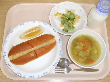 今日の「ポテトサンド」には、白いんげん豆が入っているため、食感にアクセントがありました。見た目では気付きにくいため、豆類が苦手な子どもでも食べやすい献立です。
