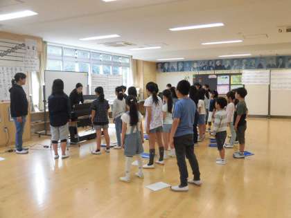 11日(火)の朝、合唱団の朝練習がありました。川場移動教室を終えたので、5年生も元気に参加しています。「わたしはこねこ」の部分練習やパート練習を重ねています。自由曲の練習も始まりました。