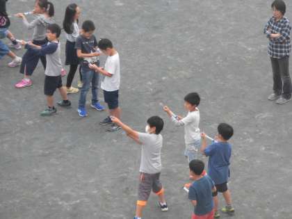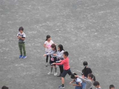 11日(火)の5時間目、4年1組は理科の時間でした。単元名「空気と水」の学習に取り組んでいました。今回は、校庭で空気でっぽう飛ばしをしました。「ポン!」と勢いよく玉が飛び出し、子どもたちは大喜びでした。