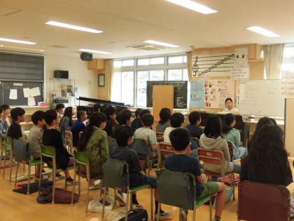 12日(水)の2時間目、6年1組は音楽の時間でした。最初に10日(月)に行った音楽朝会の振り返りをしました。録音した「つばさをください」をみんなで聞きました。人数の多さに圧倒された、リハーサルよりは上手にできた、緊張した、さびの部分で盛り上がることができたなどの声が聞かれました。次に、鍵盤ハーモニカで「ラバーズ・コンチェルト」を吹きました。指使いの難しいところがありましたが、子どもたち同士で教え合うことができました。一人ずつ2小節を演奏するリレー演奏にも挑戦していました。