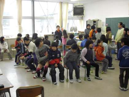 これは2年生と5年生の様子です。椅子取りゲームや鬼探しなど、やはり工夫して遊んでいます。5年生も1ヵ月後には芦花小の最高学年となります。2年生に対する声かけもやさしく感じました。