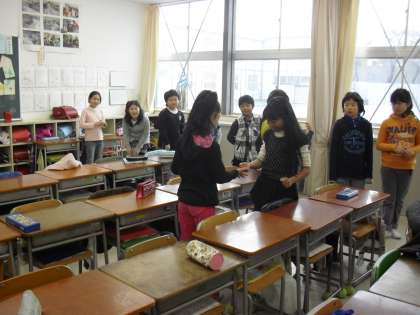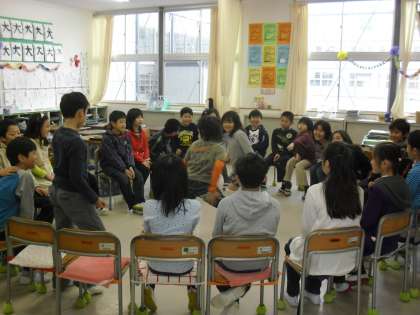 3年生と4年生の様子です。学年対抗でドンジャンケンをやっていたり、フルーツバスケットを楽しんでいます。年齢も近いので、まるで一つのクラスのようです。爽やかな時間を過ごしています。
