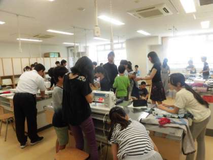 17日(月)の3・4時間目、6年1組は家庭科の時間でした。「作って使おう!MYエプロン」の最終回でした。全員がエプロンの完成をめざして取り組んでいました。早めに仕上がった人は、エプロンに飾りを付けたり、あまり布で巾着や三角巾を作ったりしていました。最後に、エプロンを身に付けて写真を撮りました。