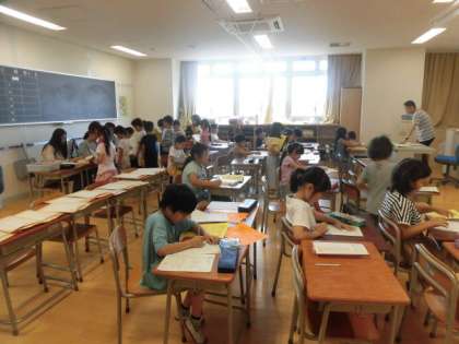 17日(月)の6時間目、寺子屋クラブがありました。4階の算数教室で2年生と3年生を対象に実施しています。丸付けには保護者の方にお手伝いをいただいています。いつもありがとうございます。