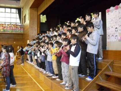 「在校生を誇りに思います。」6年生のお礼の言葉の一部です。お礼の合奏は「剣の舞」です。その迫力あるすばらしい合奏に「アンコール」が沸き起こり、もう1回聴かせてくれました。
