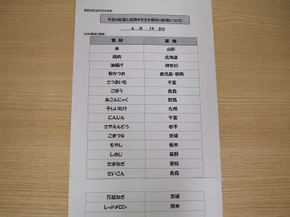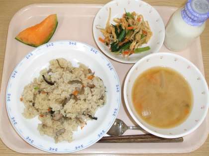今日は「福岡県」の郷土料理である「かしわめし」と「だご汁」でした。「かしわ」とは鶏肉のことで、鶏肉と野菜などを一緒に炊き込みました。また、「だご」とは団子のことで、平たくつぶした団子が入っています。