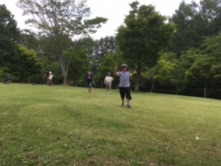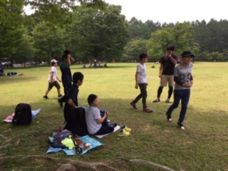 河口湖総合公園です。広い草原で思い思いの遊びを楽しんでいます。