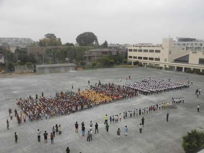 21日(金)の朝は、校庭で集会を行いました。今回は小学生と中学生が一緒に参加して、「生徒会」と「代表委員会」の紹介をしました。